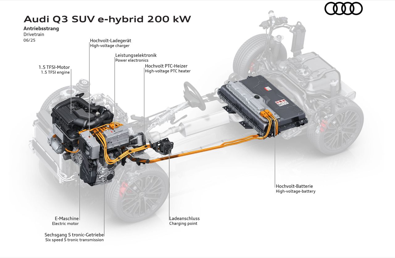เครื่องยนต์ Plug-in Hybrid (PHEV): ใช้เครื่องยนต์ 1.5 TFSI ทำงานร่วมกับมอเตอร์ไฟฟ้า ให้กำลังรวม 268 แรงม้า มาพร้อมแบตเตอรี่ขนาด 25.7 kWh สามารถวิ่งด้วยไฟฟ้าล้วน (EV Mode) ได้ไกลถึง 90 - 118 กิโลเมตร
