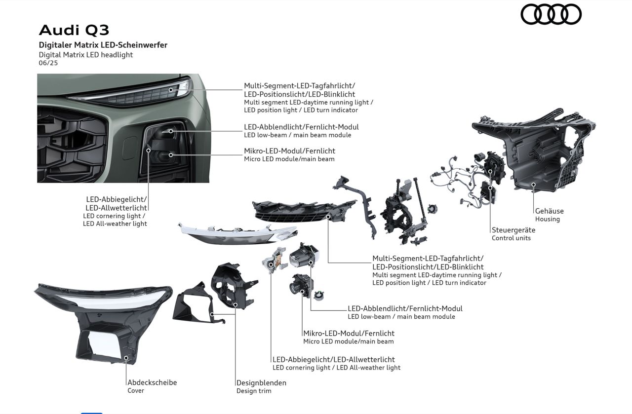 Q3 คือรถยนต์สี่ห่วงรุ่นขายดีของ Audi Thailand และหลายปีก่อนในขั้นตอนของการพัฒนารถรุ่นใหม่ Audi AG ลงมือปรับโฉมและพัฒนา Q3 ใหม่ รุ่นที่สามให้ล้ำไปไกลกว่าเดิม ไม่ต้องแปลกใจที่ Q3 ได้รับความนิยมในไทย ไม่ใช่ที่ความหรูและราคา แต่เป็นสมรรถนะการใช้งาน ที่บางจุดดูจะสูสีและบางจุดก็เหนือกว่าทั้ง BMW X1 และ Mercedes-Benz GLA ทุกวันนี้ ตลาดรถครอสโอเวอร์หรูขนาดกะทัดรัด ค่าตัว 2.0-2.4 ล้านบาท กำลังถูกโจมตีอย่างหนักจากแบรนด์รถจีนที่มีผลิตภัณฑ์ใหม่ๆออกมาอย่างต่อเนื่อง สงครามราคา ส่งผลกระทบกับแบรนด์หรูเยอรมันพอสมควร Audi ควรจะนั่งอยู่ในตำแหน่งพรีเมียมและมองลงมาเหนือการแข่งขันที่รุนแรงในตลาดหลัก แต่ Q3 ไม่อาจทำราคาให้สูสีกับรถคู่แข่งดั้งเดิมอย่าง BMW X1, Mercedes-Benz GLA, Range Rover Evoque และ Volvo EX30 ภาษีใหม่ ทำให้ Audi ทุกรุ่น มีราคาสูงขึ้นอย่างเห็นได้ชัด New Q3 Mk3 เพิ่มความโดดเด่นด้านรูปลักษณ์ มันดูเฉียบคมจนทำให้ Q3 Mk2 รุ่นก่อนดูเป็นรถอีกยุคนึงไปเลยเมื่อเทียบกับรุ่นใหม่ สำหรับ Q3 รุ่นใหม่ มีรายละเอียดเยอะมากเกินที่จะอธิบายให้หมดทั่วทั้งคัน กระจังหน้าแบบ Singleframe ไฟ LED แบบใหม่ ไฟท้ายแบบแยกส่วน ขนาดตัวรถค่อนข้างกะทัดรัด ที่ความยาว 4.5 เมตร แต่ก็มีกลิ่นของ Q5 ในแง่ของการออกแบบ