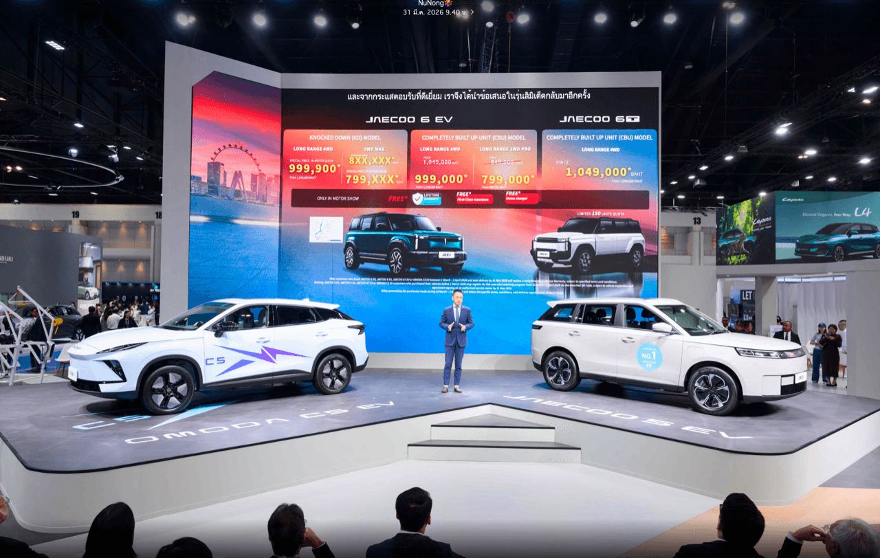 นอกจากนี้ ยังได้เปิดตัว JAECOO 5 EV MAX+ รถไฟฟ้าที่มาด้วยแบตเตอรี 50.6 kwh รุ่นใหม่ที่โดดเด่นด้านความคุ้มค่า ฟีเจอร์ครบครัน และตอบโจทย์การใช้งานจริงของครอบครัวยุคใหม่ ด้วยการประกาศราคาคาดการณ์ 6xx,xxx บาท และสำหรับภายในช่วง Motor Show ตั้งแต่วันที่ 23 มีนาคม – 5 เมษายน 2569 ลงทะเบียนจองสิทธิ์รับราคาพิเศษ 579,000 บาท* (ก่อนปรับเป็น 6xx,xxx บาท ตั้งแต่วันที่ 6 เมษายน 2569 เป็นต้นไป) โดยมี มาริโอ้ เมาเร่อ แบรนด์แอมบาสเดอร์ของแบรนด์ JAECOO มาร่วมถ่ายทอดประสบการณ์การขับขี่ที่ยอดเยี่ยมแก่ผู้เข้าชมงาน