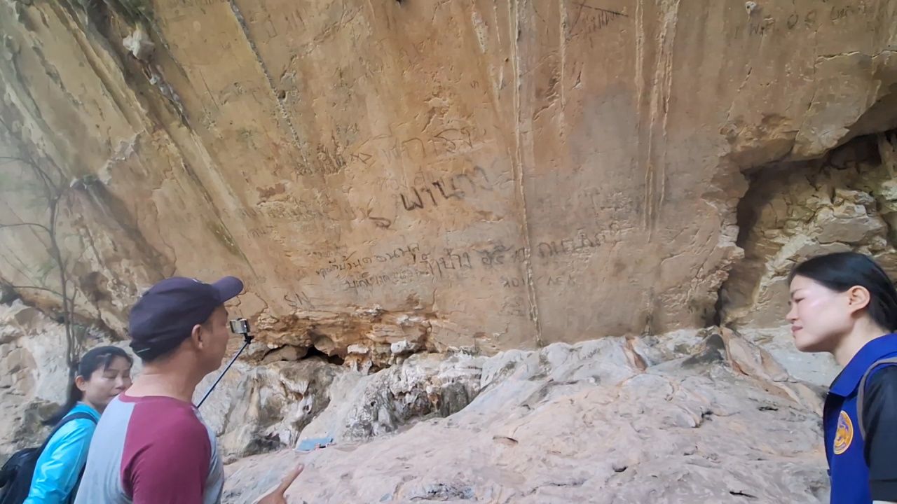 ตนเองเคยเขียนป้ายติดไว้ว่า ใครเขียนปรับ 2,000 บาท แต่ก็ไม่ได้ผล สุดท้ายเลยเขียนป้ายเล็กๆ พร้อมข้อความแช่งคู่ไหนเขียนผนังถ้ำ ขอให้จากกันไปตลอดชีวิต คู่ไหนทำดีขอให้รักกันมั่นคง หลังจากนั้นก็ไม่มีใครกล้ามาเขียนอีกตอนนี้ก็อยากให้หน่วยงานที่เกี่ยวข้องมาตรวจสอบ และหาวิธีช่วยลบตัวหนังสือที่คนมือบอนเขียนทิ้งเอาไว้ เพราะมันไม่สวยงามเลย เวลานักท่องเที่ยวเขามาถ่ายรูปมันก็ดูไม่งามตา ไม่สวยงามแถมยังเสียชื่อแหล่งท่องเที่ยวหมดจึงอยากฝากถึงคนที่เข้ามาทำแบบนี้ว่า เป็นสิ่งไม่ควรกระทำเป็นอย่างยิ่ง เพราะการท่องเที่ยวเชิงอนุรักษ์ควรช่วยกันรักษาธรรมชาติ