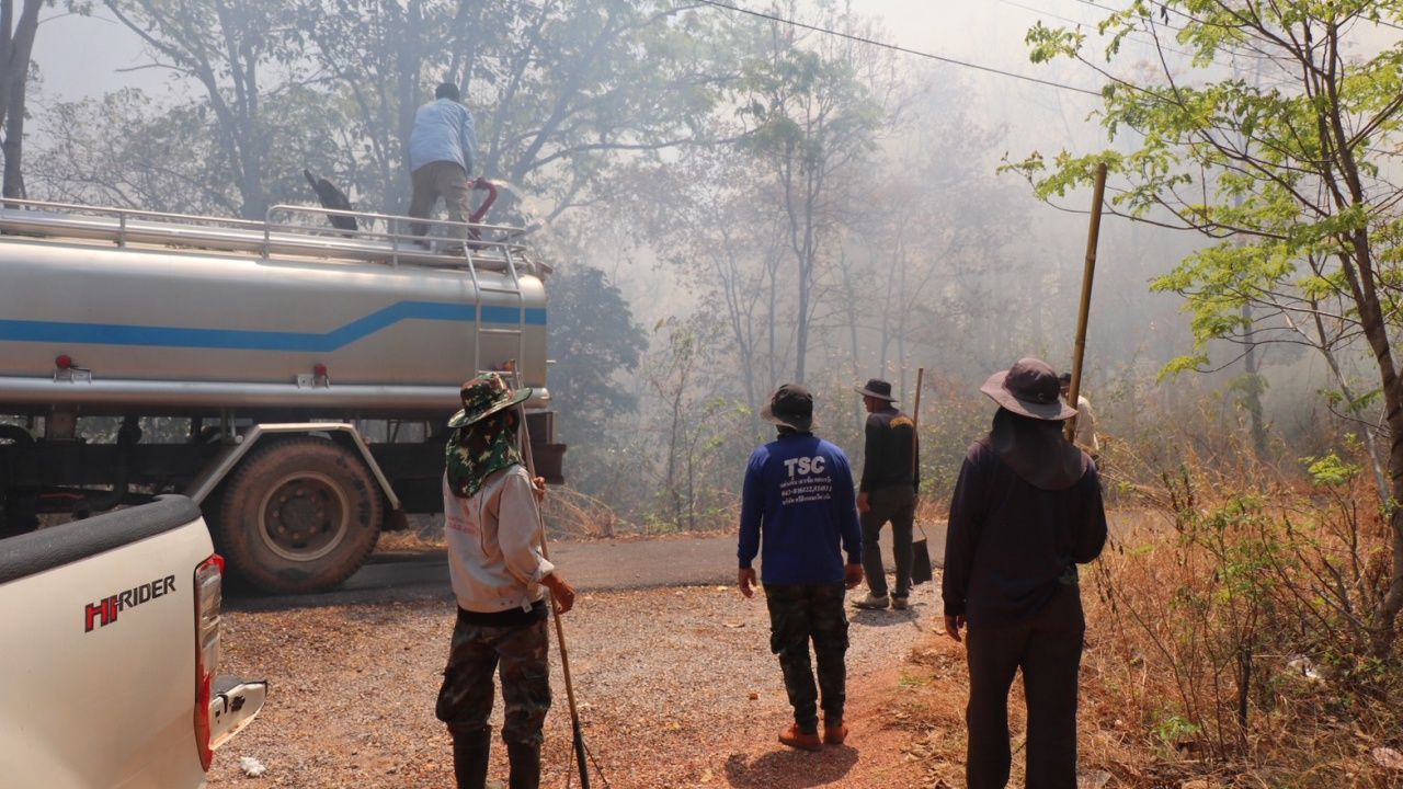 อย่างไรก็ตาม ผู้บริหารท้องถิ่น ได้ตั้งจุดดับไฟป่า แบ่งออกเป็นสองส่วน คือบริเวณด้านล่างตั้งจุดที่วัดกัลยาณบริหาร ต.โนนบุรี และด้านบนเป็นวัดพุทธาวาสภูสิงห์ หรือ วัดภูสิงห์ ที่ประชาชนต่างพากันระดมดับเพลิงด้วยความระทึก ทั้งนี้ ฝุ่นที่เกิดจากไฟที่ลุกไหม้ยังทำให้เกิดฝุ่น PM 2.5 ฟุ้งกระจายครอบคลุมเกือบทั้งอำเภอแล้ว.