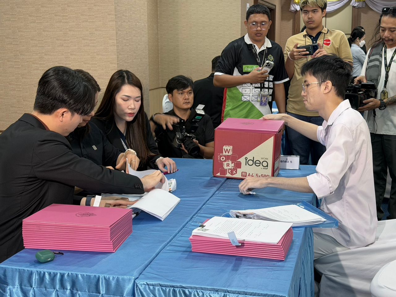 นอกจากนี้ พรรคประชาชน ยังส่งทีมกฎหมายของพรรค เป็นตัวแทนรับมอบอำนาจ เดินทางมารับหนังสือรับรอง ทั้งแบบแบ่งเขตและแบบบัญชีรายชื่อ โดยเป็นตัวแทนมาทั้งหมด 3 คน มาพร้อมกับกล่องลังกระดาษ 3 ใบ เพื่อรับหนังสือรับรองทั้งหมด 120 คน แบ่งเป็น สส.เขต 88 คน และ สส.บัญชีรายชื่อ 32 คน