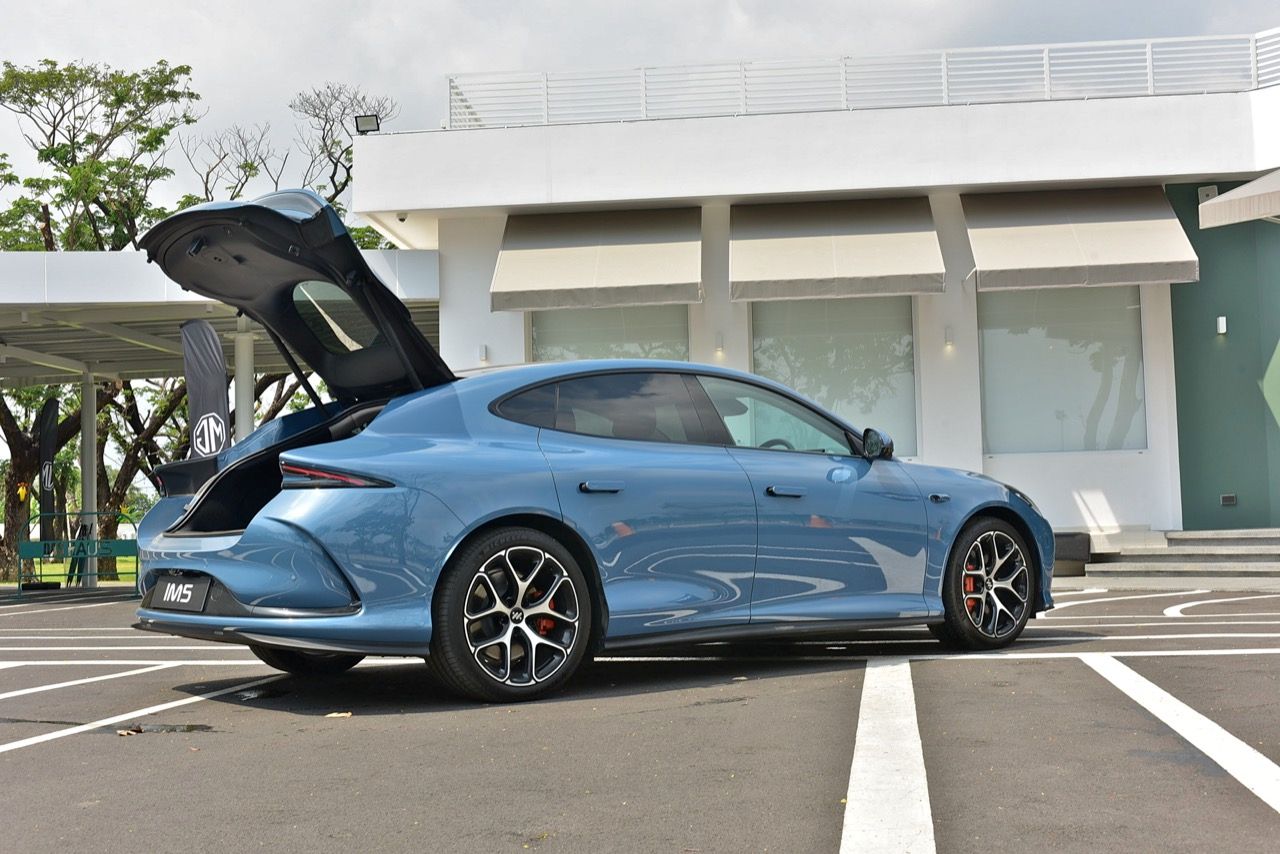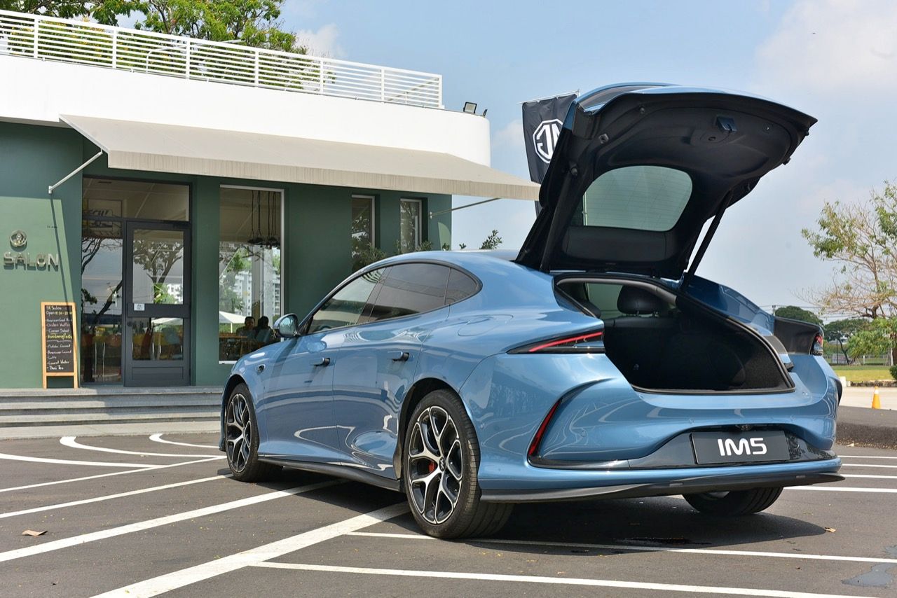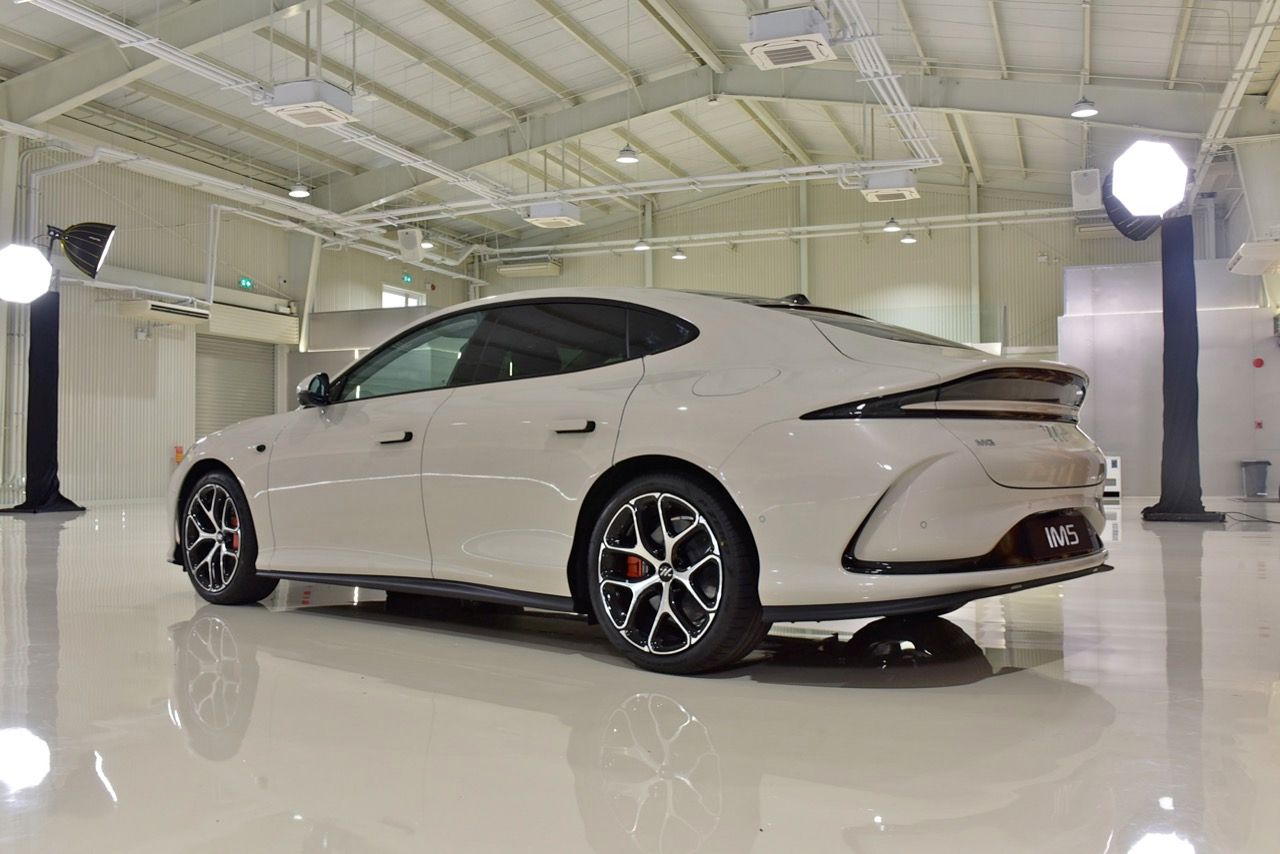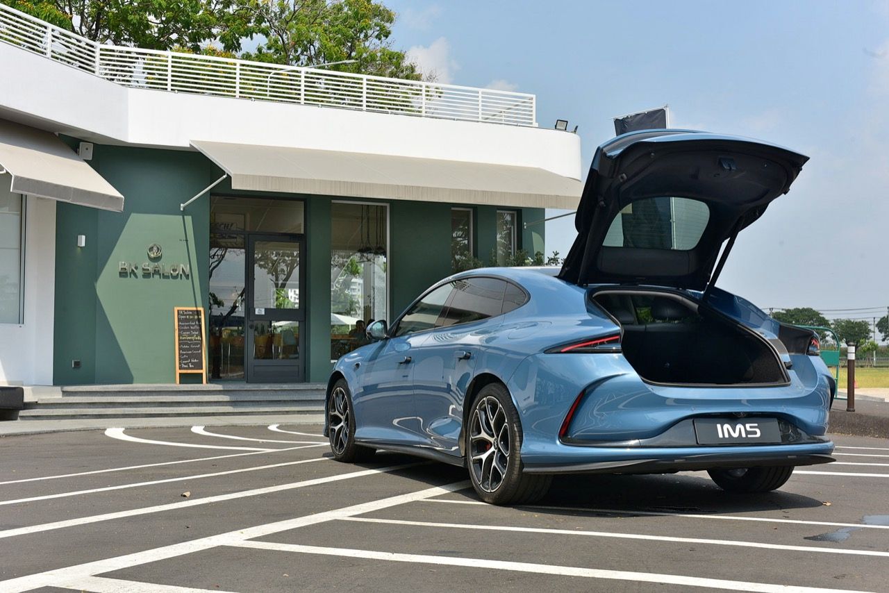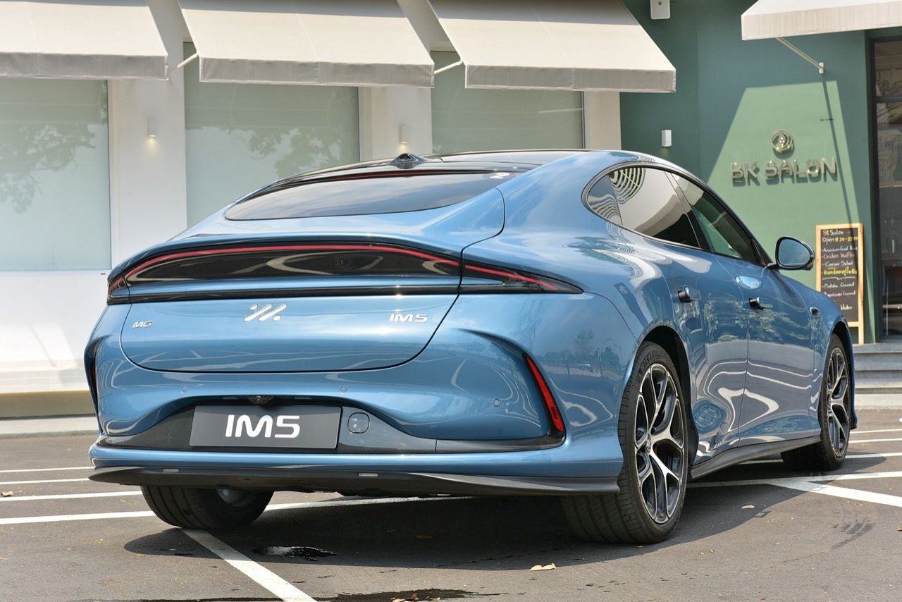 มิติตัวถังและรูปลักษณ์ MG IM5 มีดีไซน์แบบสปอร์ตซีดานที่เน้นความลู่ลม (ค่าสัมประสิทธิ์แรงเสียดทานต่ำเพียง 0.226) ความยาว 4,931 มิลลิเมตร กว้าง 1,960 มิลลิเมตร สูง: 1,474 มิลลิเมตร ความยาวฐานล้อ: 2,950 มิลลิเมตร (ให้พื้นที่ภายในกว้างขวาง) ฝาท้ายไฟฟ้า ดีไซน์แบบ Hatchback เปิดได้กว้างและขนสัมภาระได้สะดวก (พื้นที่จุของ 457 - 1,290 ลิตร) ช่วงล่างและการขับขี่ ช่วงล่างหน้าดับเบิลวิชโบน (Double Wishbone) เพื่อการควบคุมที่แม่นยำ ช่วงล่างหลัง มัลติลิ้งค์ (Multi-link) เพื่อความนุ่มนวลและการเกาะถนน เทคโนโลยีพิเศษ: มาพร้อมระบบบังคับเลี้ยว 4 ล้อ (Four-wheel Steering) ช่วยให้วงเลี้ยวแคบลงเทียบเท่ารถขนาดเล็ก ทำให้ขับขี่ในเมืองได้คล่องตัวสูง