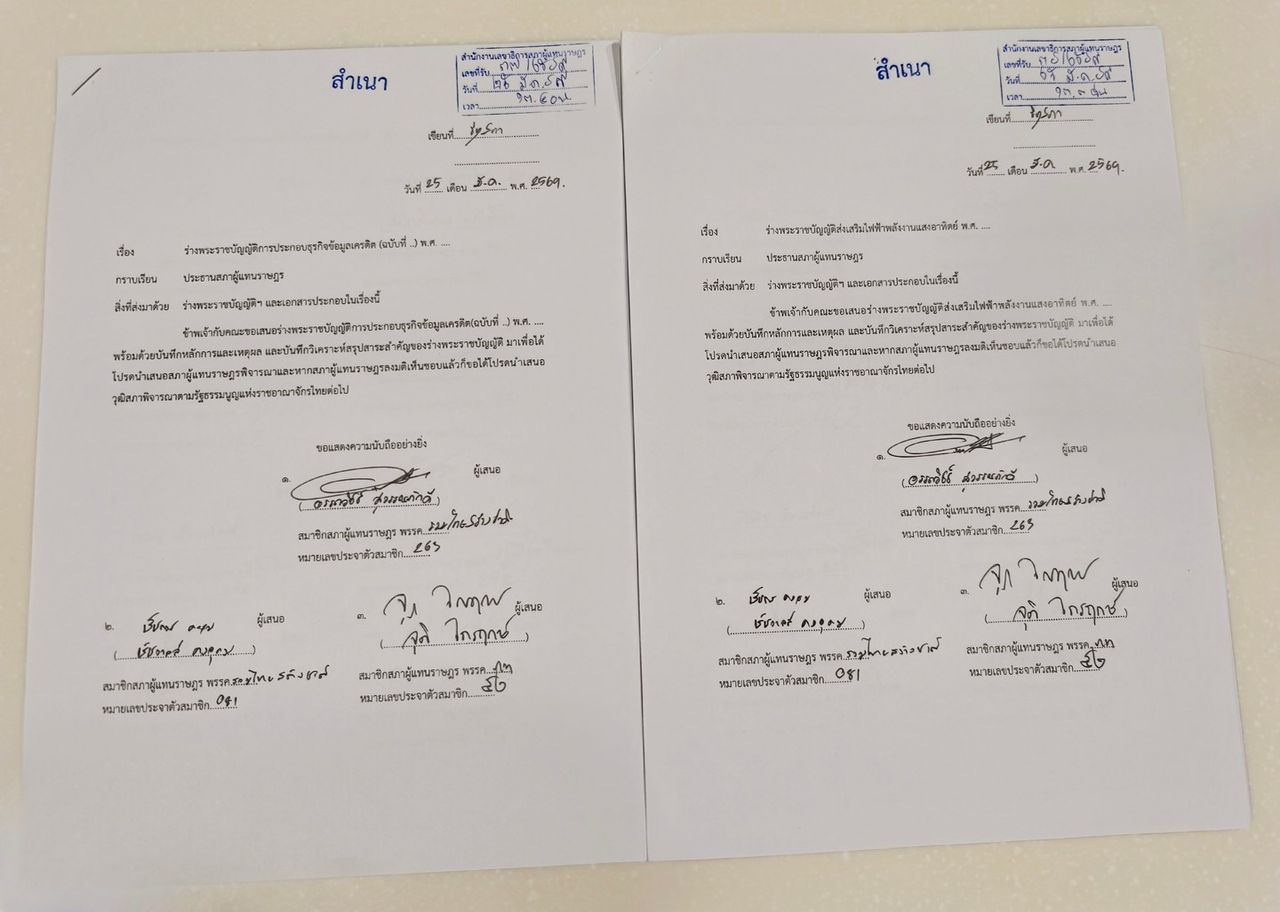 “อรรถวิชช์” ยื่น 2 กฎหมายของพรรครวมไทยสร้างชาติ ดัน “เสรีโซลาร์-ปฏิรูปเครดิตบูโร” ลดต้นทุนพลังงานและโอกาสทางการเงินของประชาชน ขอบคุณเพื่อนสมาชิกร่วมลงชื่อสนับสนุนจนยื่นเข้าสู่สภาฯ ได้สำเร็จ