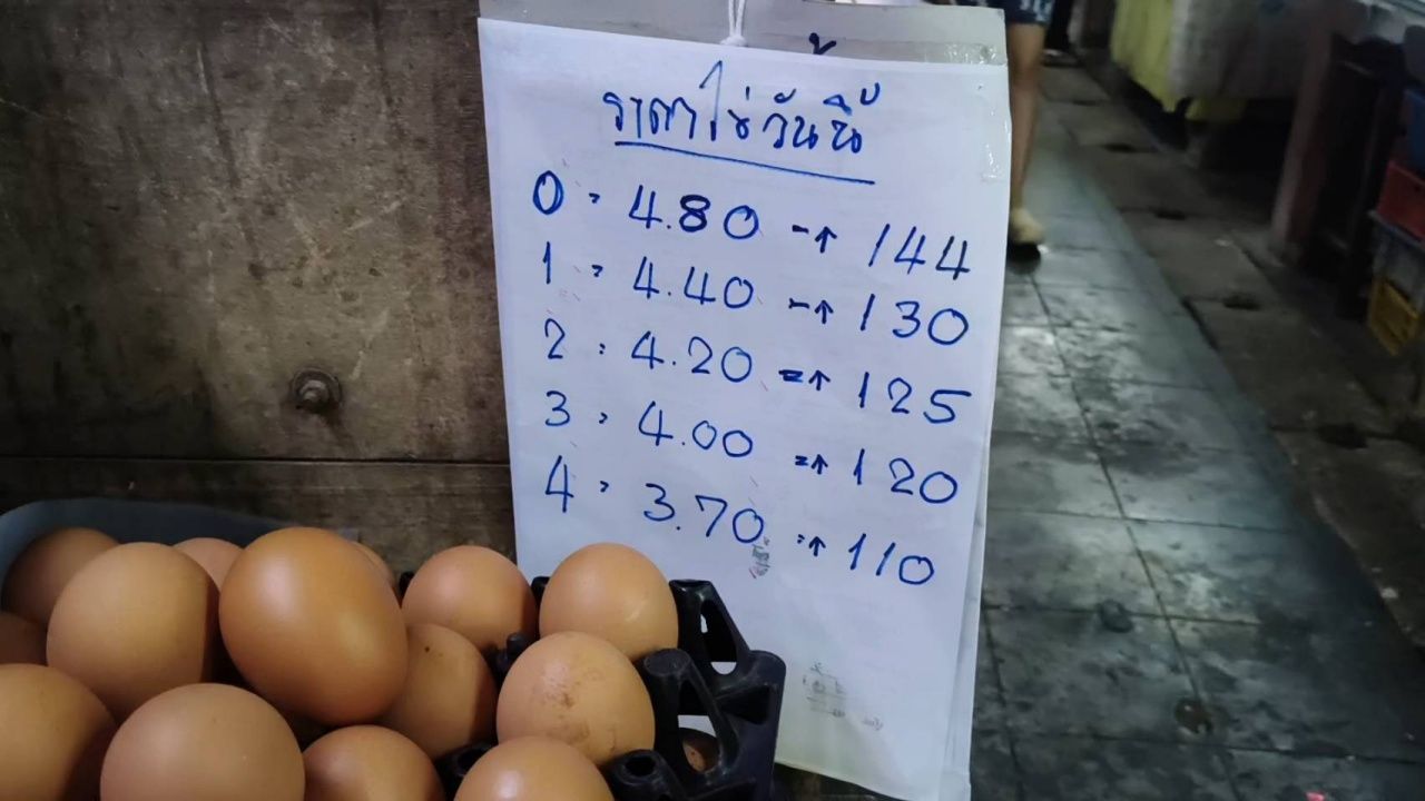โดยนายรหัส อายุ 74 ปี เจ้าของแผงไข่ กล่าวว่า ตอนนี้ฟาร์มไข่แต่ละที่ แจ้งมาทางตนว่าราคาไข่ขึ้น สาเหตุจากปัญหาราคาน้ำมันและสภาพอากาศร้อน ไก่ไข่ออกผลผลิตน้อย ลูกค้าที่มาซื้อไข่ที่ร้านต่างก็บ่นถึงราคาสินค้าที่ขึ้นหลายอย่าง แต่ก็จำเป็นต้องซื้อ อนาคตยังไม่ทราบว่าจะมีการปรับราคาลงหรือไม่ เพราะมีปัจจัยหลายอย่างที่ส่งผลกระทบ แต่ไข่ไม่ขาดตลาดแน่นอน