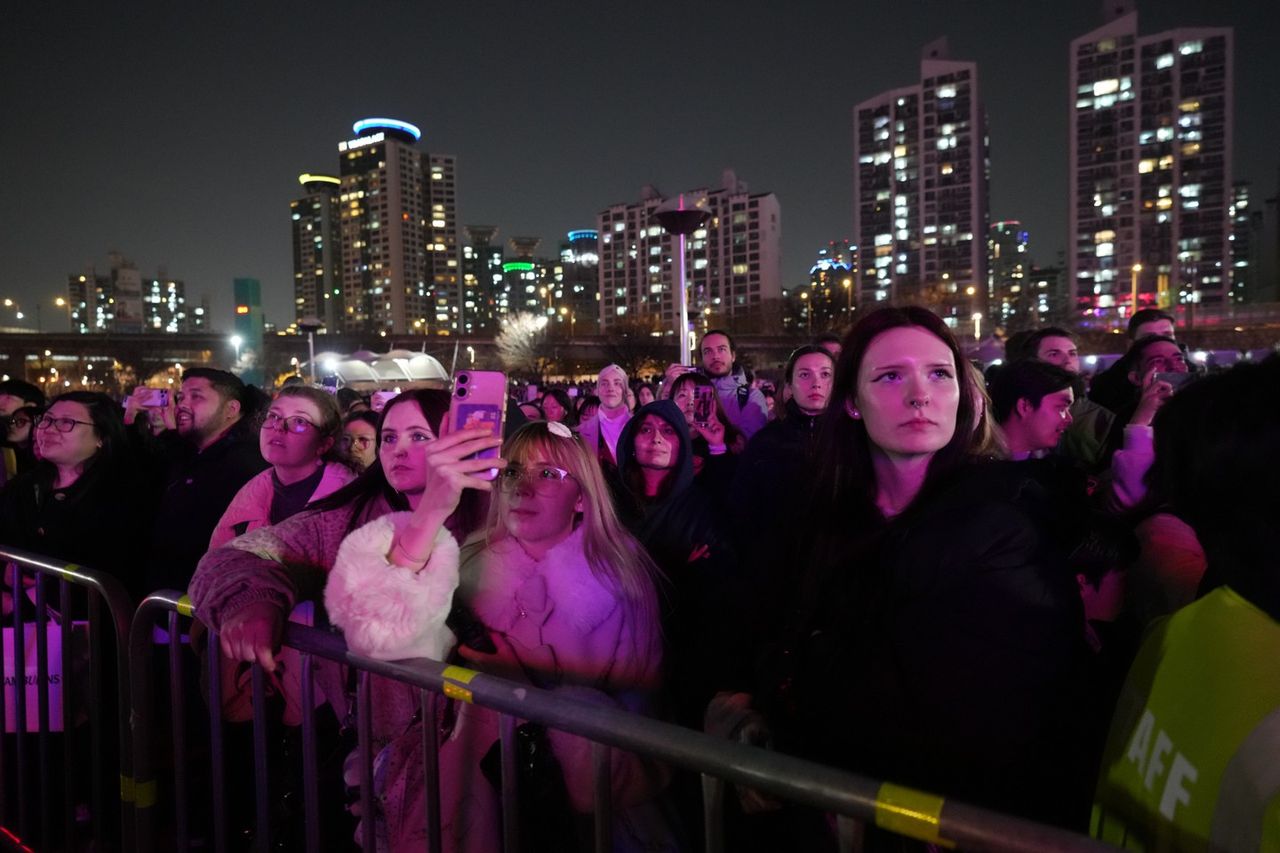 แฟนคลับ BTS แห่ร่วมชมโดรนโชว์สุดอลังการกลางกรุง โซล แปรเป็นภาพใบหน้าสมาชิกทั้งวง เพื่อฉลองการคัมแบ็กอัลบั้มใหม่ "ARIRANG" ก่อนจัดคอนเสิร์ตใหญ่ที่คาดว่าจะมีผู้ชมกว่า 260,000 คนในวันนี้