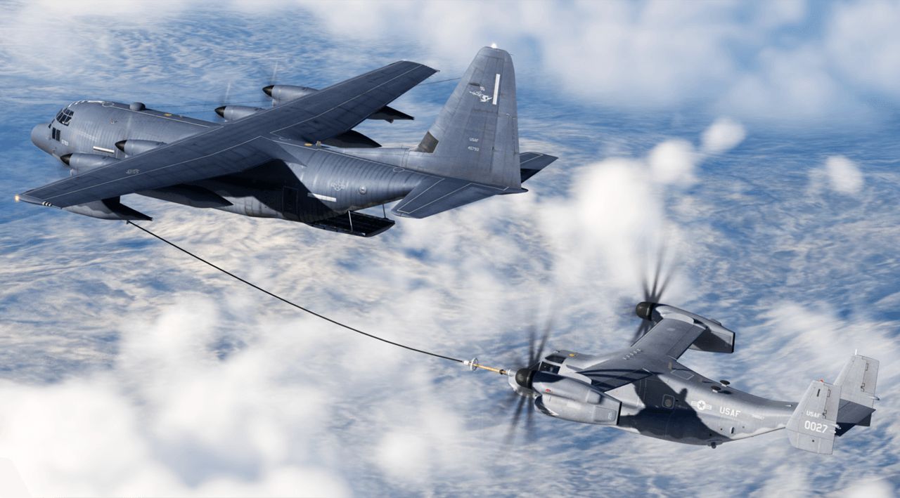 การเติมน้ำมันกลางอากาศ (Aerial Refueling) สามารถเติมน้ำมันให้กับเฮลิคอปเตอร์ปฏิบัติการพิเศษ เช่น MH-60 Black Hawk หรือเครื่องบินใบพัดกระดก CV-22 Osprey ในระดับความสูงต่ำและในเวลากลางคืน