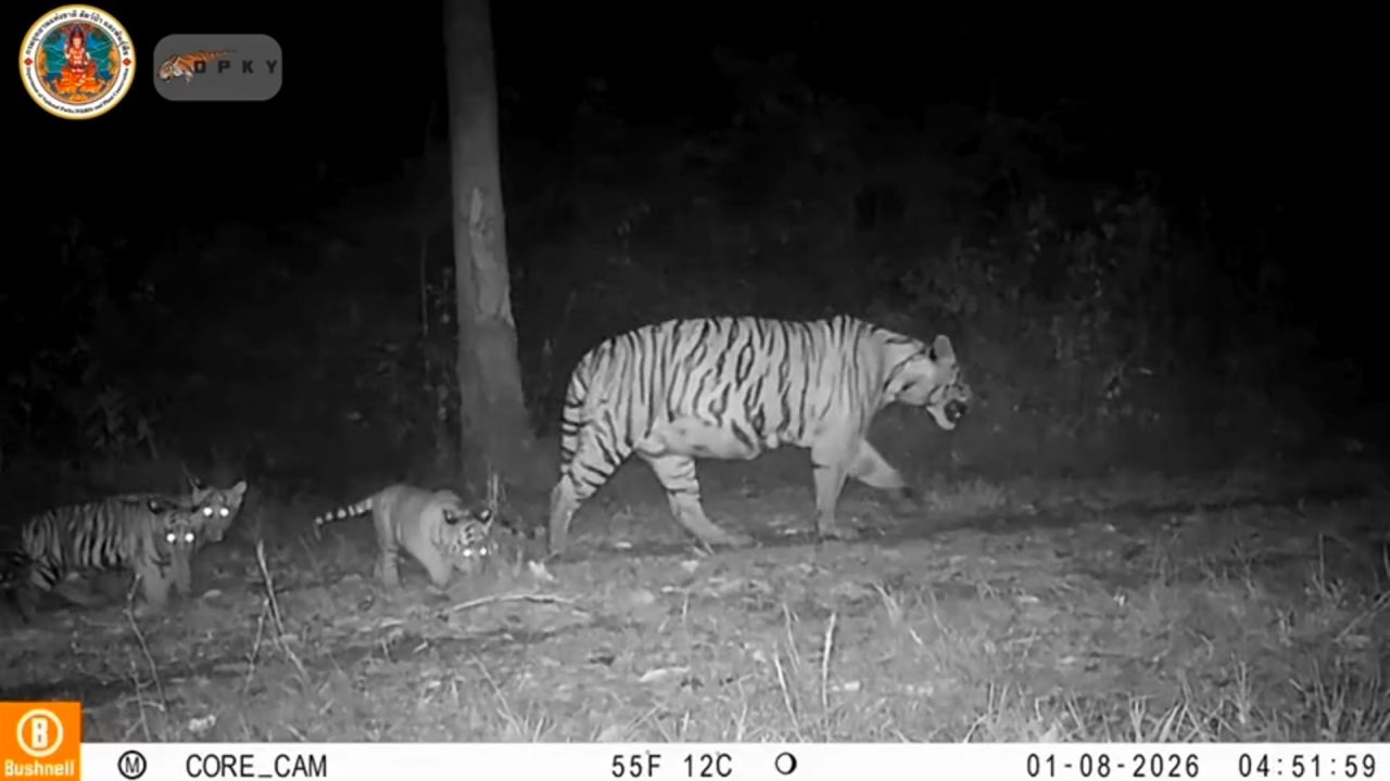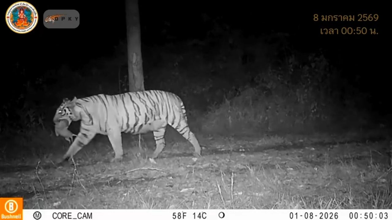 วันที่ 4 เม.ย. 69 ผู้สื่อข่าวรายงานว่า จากกรณีทางเพจเฟซบุ๊ก สถานีวิจัยสัตว์ป่าดงพญาเย็น – เขาใหญ่ ได้โพสต์คลิปวิดีโอในขณะที่แม่เสือโคร่งตัวหนึ่ง ได้คาบสัตว์ขนาดเล็กเดินผ่านกล้องดักถ่ายของสมาคมอนุรักษ์สัตว์ป่า (WCS) ประเทศไทย เมื่อวันที่ 8 ม.ค. 69 เวลา 00.50 น. ต่อมาในเวลา 04.51 น. วันเดียวกัน กล้องก็สามารถจับภาพแม่เสือโคร่งตัวดังกล่าวเดินผ่านกล้องกลับออกมา พร้อมกับลูกอีก 3 ตัว ในสภาพพุงกางทุกตัว ซึ่งเป็นภาพครอบครัวเสือสุดน่ารักและหาชมได้ยากมาก