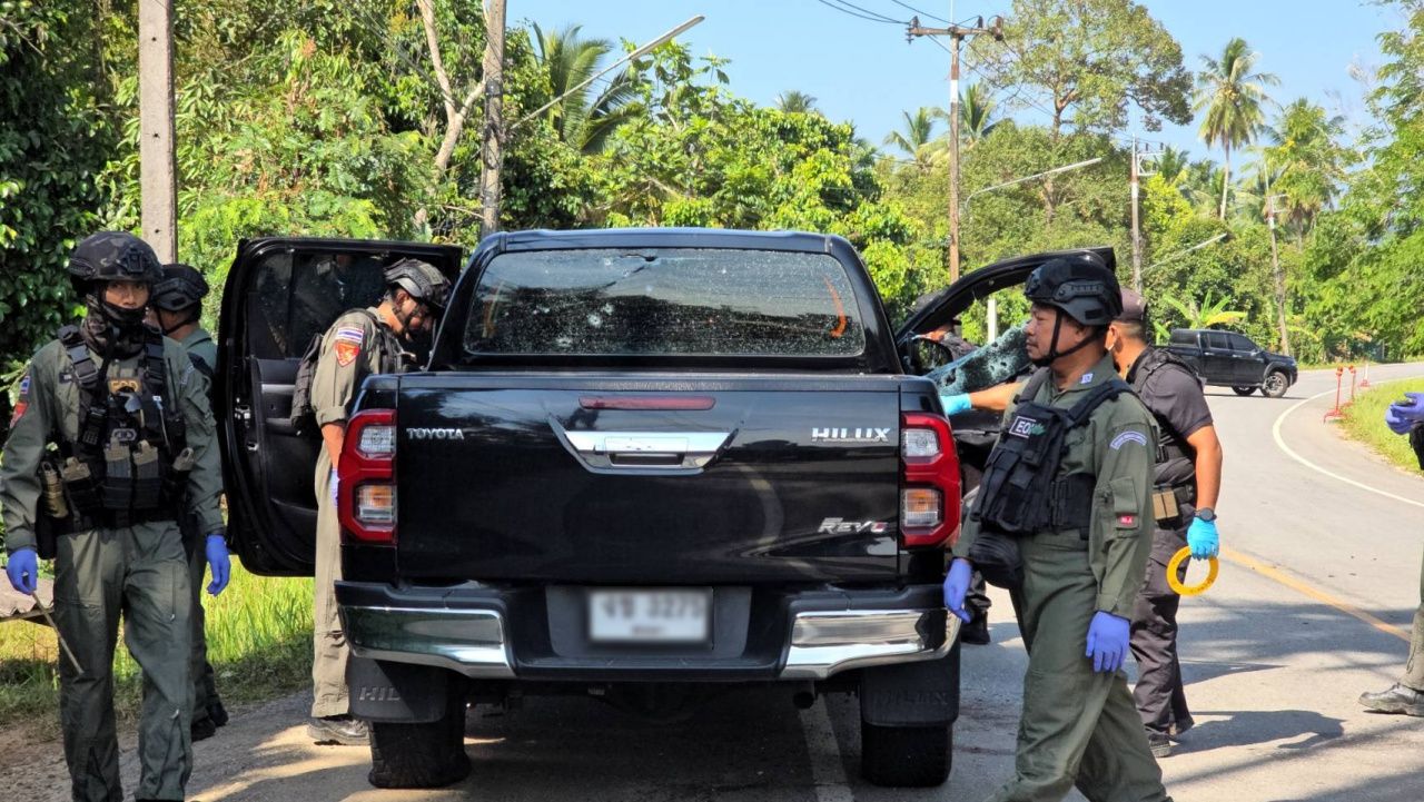 ความคืบหน้าล่าสุด เมื่อเวลา 09.30 น. วันที่ 1 เมษายน 2569 เจ้าหน้าที่ชุดเก็บกู้และทำลายวัตถุระเบิด นปพ.กองกำกับการตำรวจภูธร จ.นราธิวาส เจ้าหน้าที่กองพิสูจน์หลักฐาน จ.นราธิวาส และเจ้าหน้าที่ที่เกี่ยวข้อง ได้ร่วมกันตรวจสอบจุดเกิดเหตุ ซึ่งเป็นรถยนต์กระบะของนายมนชัย ปลัดอำเภอจะแนะ ที่จอดอยู่ริมถนนหน้าบ้านพักของ น.ส.ฮัยด๊ะ เลขที่ 117 ม.3 ต.ดุซงญอ พบว่า มีร่องรอยของวิถีกระสุนของคนร้ายยิงใส่รถยนต์กระบะทั้ง 3 ด้าน คือด้านซ้าย ด้านขวาและด้านหลังของตัวรถ จนตัวถังรถเป็นรูพรุน