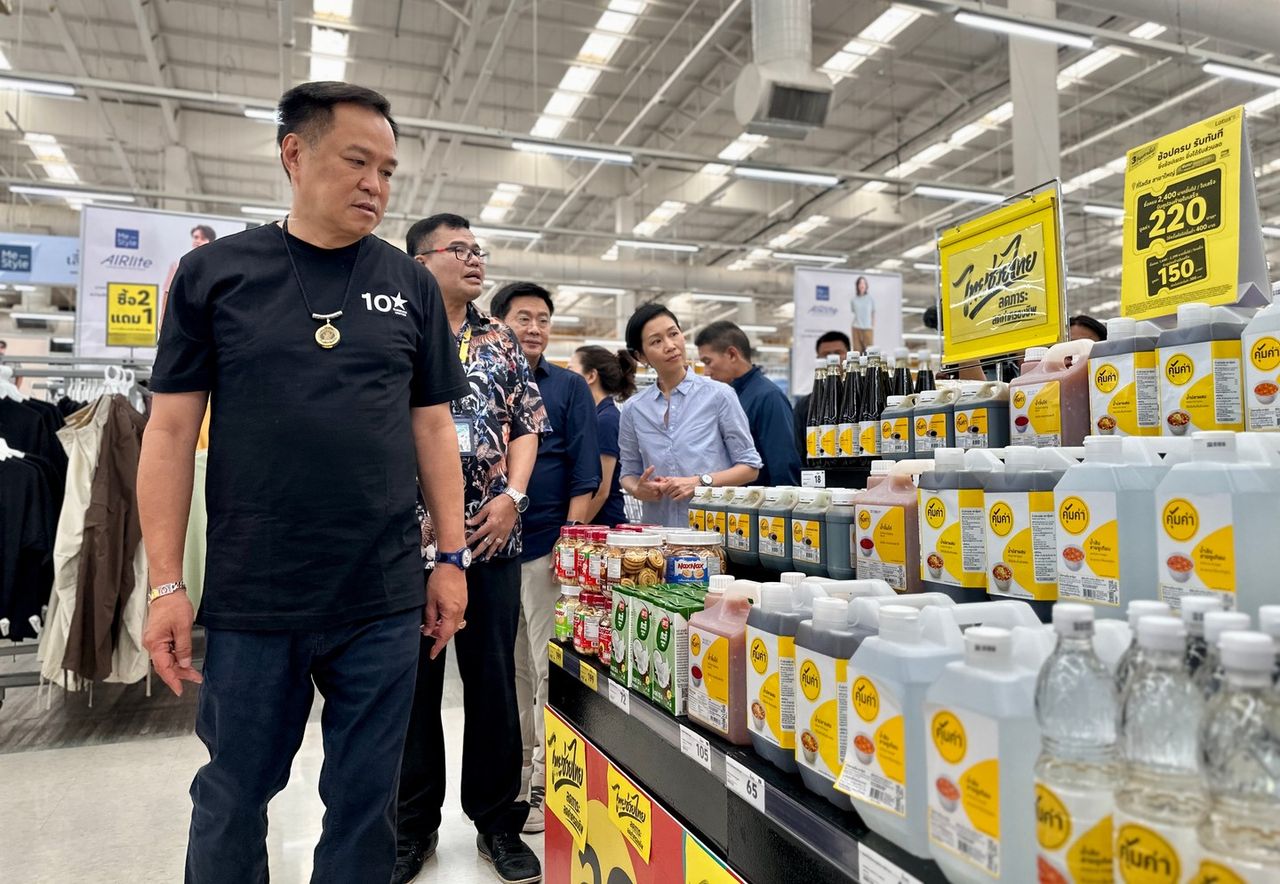 เมื่อเวลา 14.00 น. วันที่ 4 เม.ย. 2569 ที่โลตัสบางกะปิ นายอนุทิน ชาญวีรกูล นายกรัฐมนตรีและรมว.มหาดไทย พร้อมนายวุฒิไกร ลีวีระพันธุ์ ปลัดกระทรวงพาณิชย์ น.ส.รัชดา ธนาดิเรก ผู้ช่วยรัฐมนตรีประจำสำนักนายกรัฐมนตรี น.ส.ไตรศุลี ไตรสรณกุล สส.บัญชีรายชื่อ พรรคภูมิใจไทย(ภท.) ในฐานะอดีตเลขาธิการนายกรัฐมนตรี ลงพื้นที่สำรวจราคาสินค้าในโครงการไทยช่วยไทย โดยนายกฯสวมชุดลำลองเสื้อยืดกางเกงขายาวสีกรมท่า